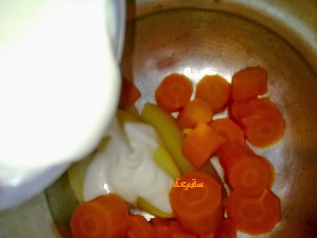 في الخلاط نضع الخضار المصلوقه وتكون بارده ونزيدو عليها دانون