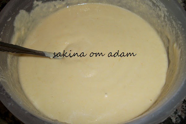 كنخلطو المقادير عادي بحال الكيك عادي وكنفرغوها في مول يكون مدهون ومرشوش بسميدة وندخلها الفران