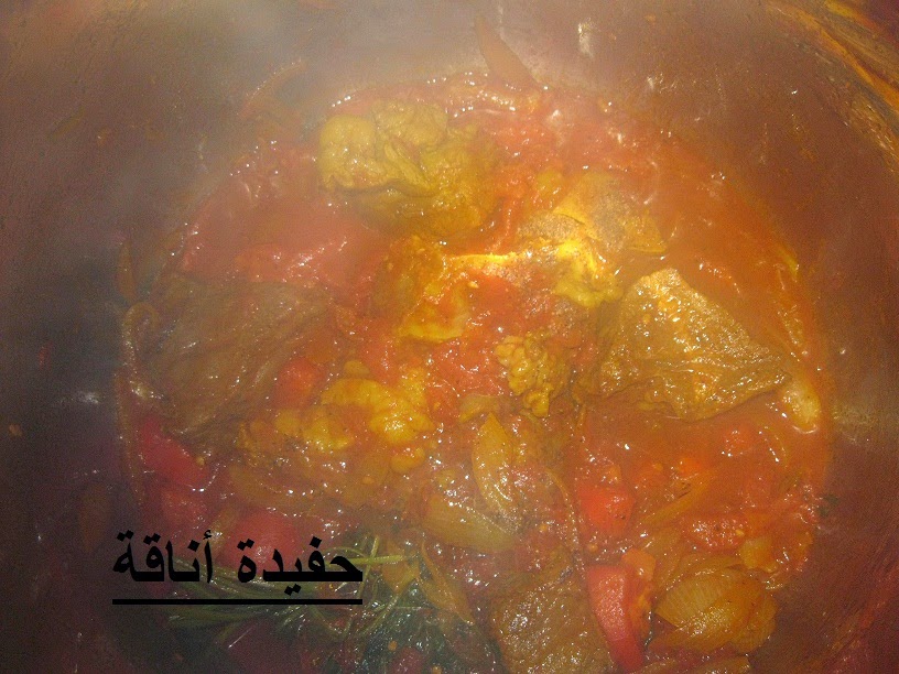 اول حاجة كنقلي اللحم مع زيت وخرقوم وملح كنخليه يتشحر مزيآآآان قد ماتقلى قد ما كيجي بنينوهدا اول سر البنة
