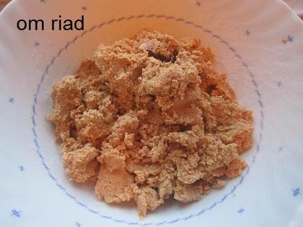 نخلط الككاو و الجنجلان مع السكر ثم نطحنه جيدا بعد ذالك نضيف الزبدة و القرفةو ماء الزهر و مسكة الحرة و نخلط الكل جيدا