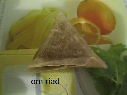 نصنع من العقدة كويرات صغيرة ثم نأخد و رقة االبسطيلة و نقسمها نصفان و نضع العقدة و نشكلها كما في الصور حتى نحصل على مثلث نسده بي خليط الدقيق و الماء