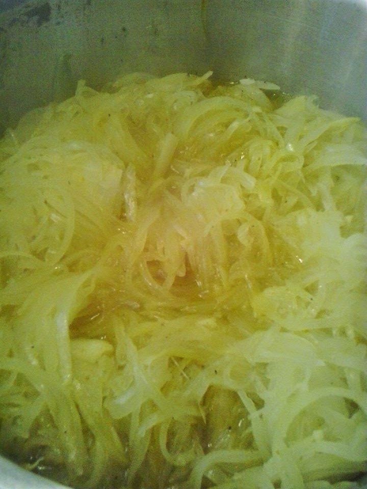 ملي نقطع البصلة رقيقة نديرها تطيب مع كاس د الما صغير و نخليها حتى تدبال شوية