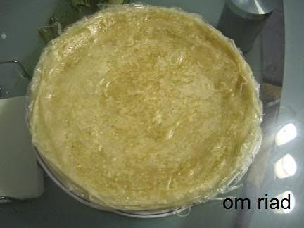 ثم نضعها في طبق و نذهنها ذهنة خفيفة بالزيت و نجهز ورقة أخرى ونضعها فوقها و نذهنها بالزيت نستمر في هذه العملية حتى ينتهي الخليط و في كل مرة نذهن بي الزيت و نغطي الورقة بي بلاستيك حتى لا تيبس
