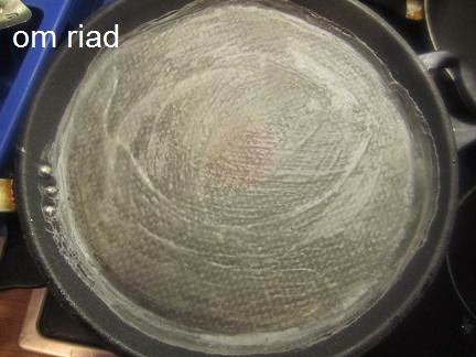 فوق نار معتدلة نضع طنجرة بها ماء و نضع فوقها مقلات تكون مقتلصقش من الأحسن مركة تيفال و نخليو حتى يغلى الماء و تسخن المقلات جيدا