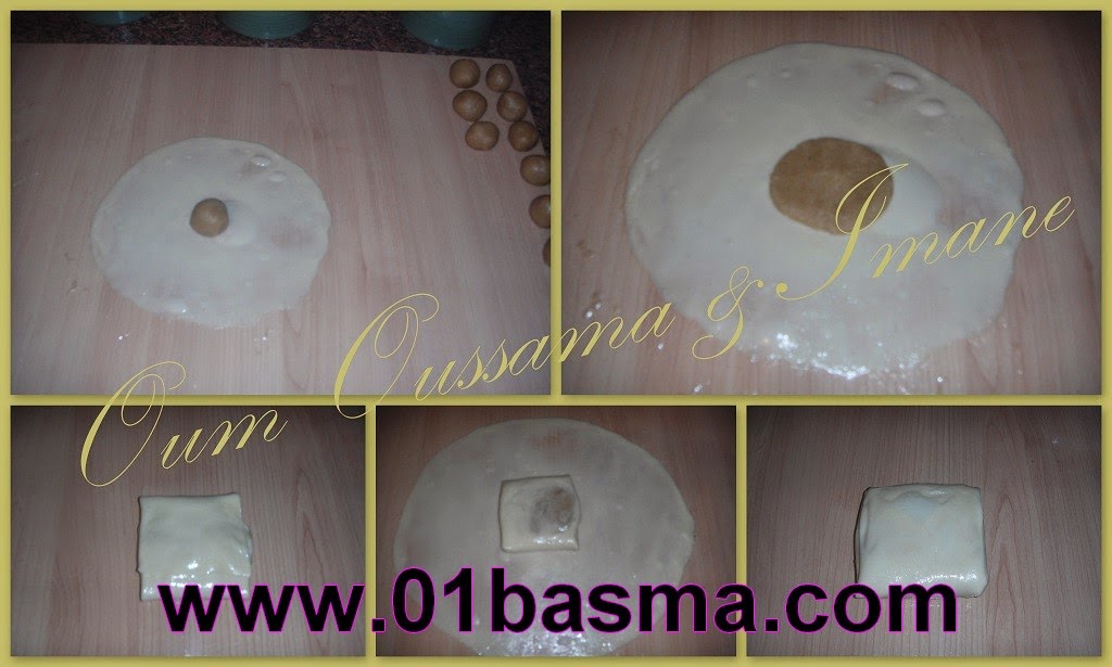 ونعمرها بحشوة اللوزونطلق وحدة أخرى ونطويها على الأولى بحث تكون