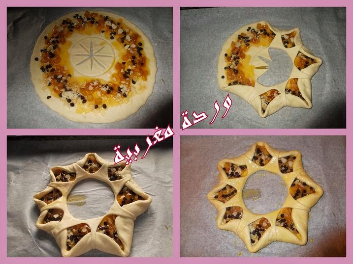 موقع بسمة لكل ما يهم المرأة المغربية يقدم فطيرة التاج بعجينة اللبن محشية بالتفاح معسل و اللوز و الشكلاط