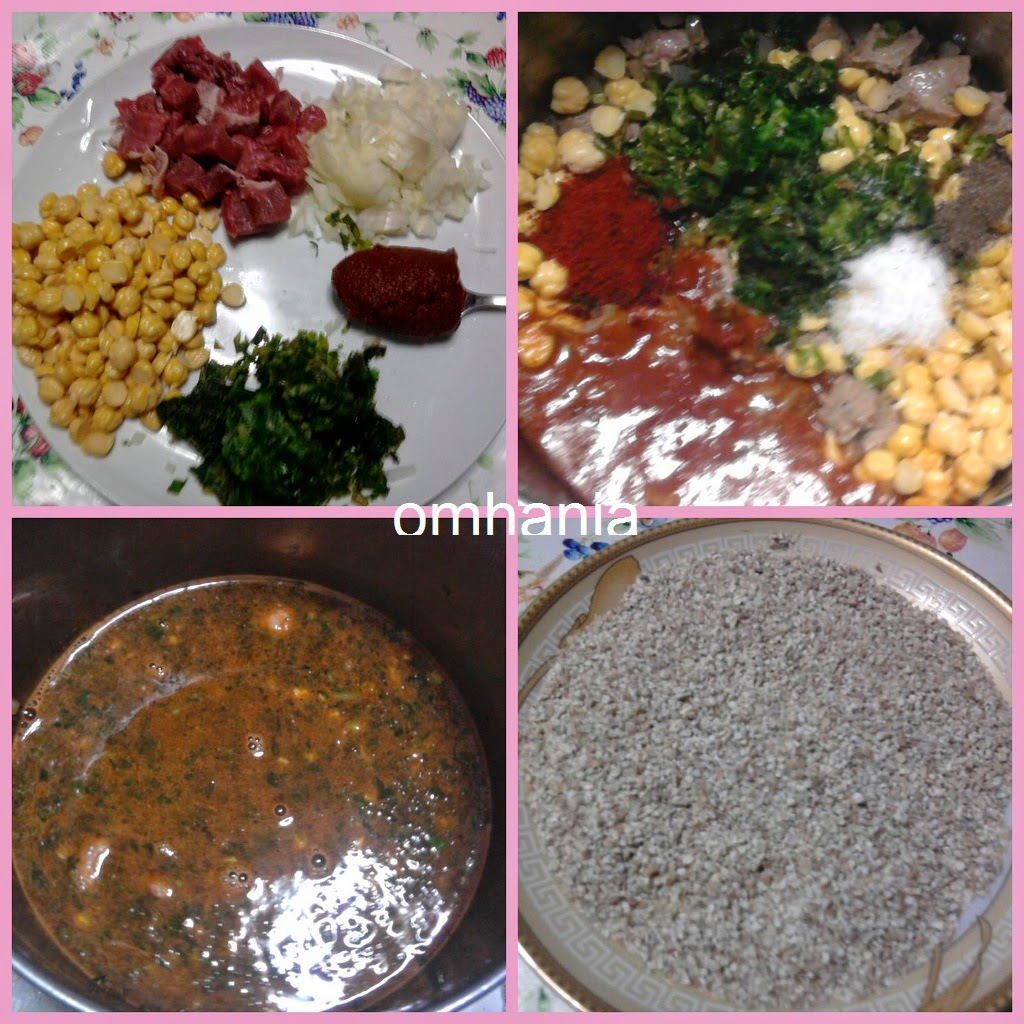 بصلة مشلضة ، شوية كرافس ومعدنوس ،قطع من اللحم ،ملعقة كبيرة مطيشة الحك ،كأس صغير حمص ،ملح ،إبزار،تحميرة ،كأس بلبولة متوسطة .