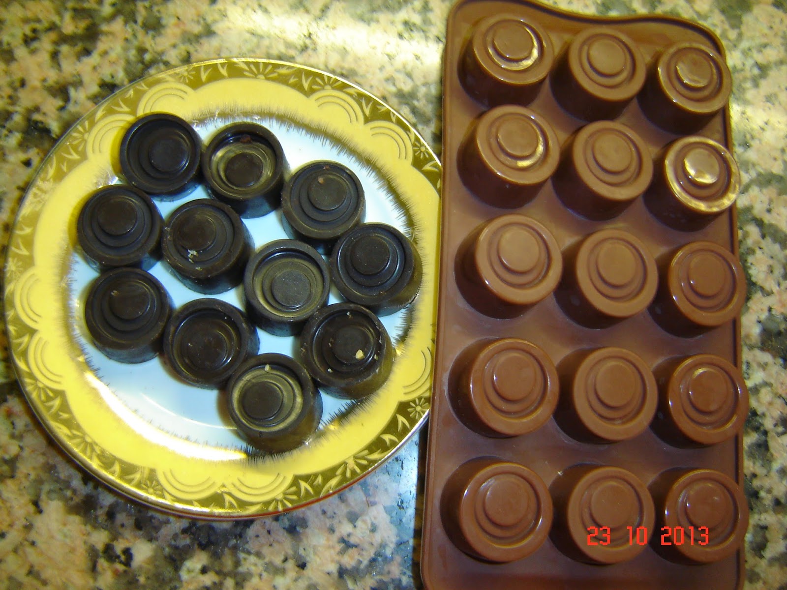 نذوبوا الشكلاط اسود في بان ماري تم نضعه في السيليكون و نضع وسطه اللوز مهرمش او اللي بغينا تم نغطيوا بالشكلاط حتى نعمروهم مزيان تم نضع السيليكون في التلاجة حتى يقصاح