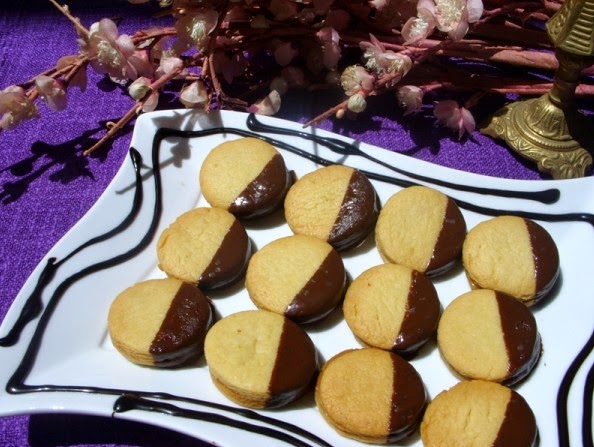 -خدي الحلوى والصقيها اتنين بكرميل الحليب المركز هكذا لغاية ما تخلصي الباقي بعدين اغمسي نصف الحلوى في الشوكولا واتركيها في مكان لغاية ما تجف الشوكولا