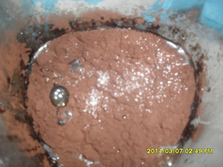 نعملو البيض و سنيدة و الزيت و الماء و الكاكاو و الفاني فمرة فمولينكس و نخلطو كلشي مرة وحدة نخليوهم يتخلطو مزياان