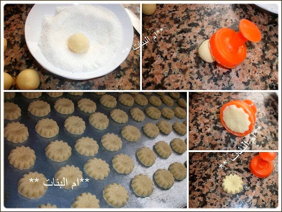 كل كرية بمررها فالسكر و اضعها فالقالب و اشيلها