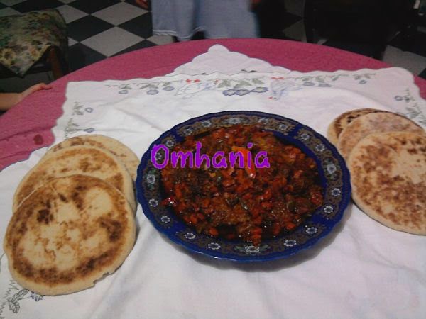كياخد الكميلة كيدير فيها زويتة بلدية وكيضيف اللحم وكيخليه يتقلى مزيآآان ثم كيضيف 4 بصلات مشنفين و الملح و الإبزار وكيخليهم يتقلاو مزيان ثم الثوم مقطع وكيخليهم يتشحرو ثم كيزيد الفلفل الحلو مقطع مربعات و الخرقوم و كيرجعهم يتشحرو ثم كيضيف خيزو مقطع مربعات و كيخليه يتقلا ثم كيديرسكين جبير والمطيشة مقطعة مربعات والتحميرة والربيع وكيخليهم يتشحرو واحد ربع ساعة ثم كيضيف المكون السري وهو عصير الأناناس أيييييه لوسي كيمرق بالعصير ماشي بالماء ههههههه