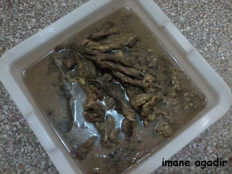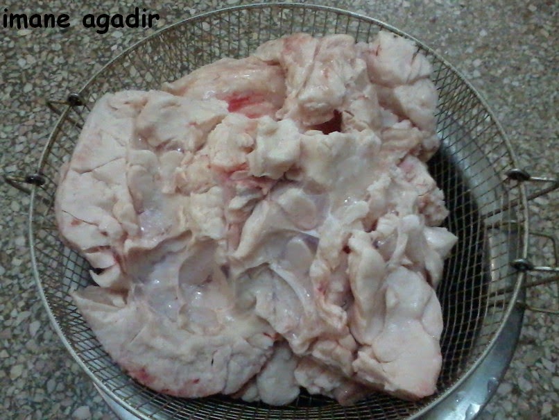 درتو فالماء يرطاب مدة ساعتين ودزت لمرحلة الطياب خديت 2كلغ ديال الشحمة ديال الكلوة وقطعتها و طحنتها