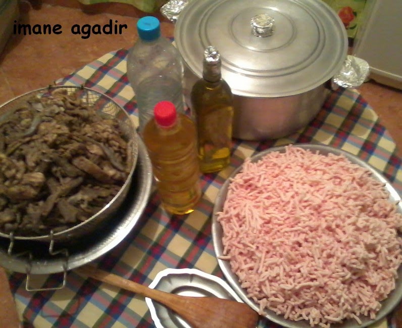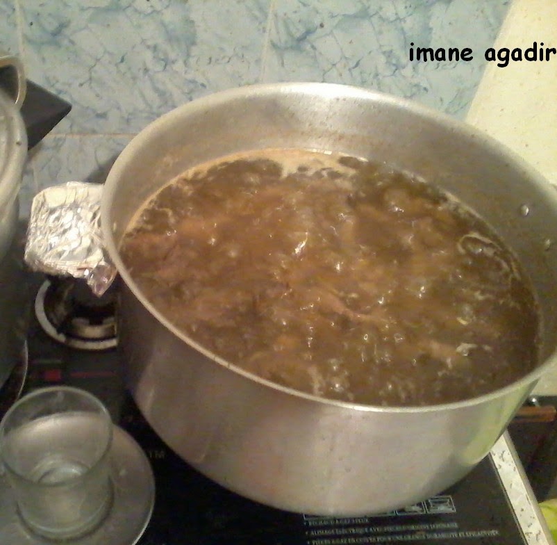 هذا الماء درتو يغلى وزدت الشحمة عاد القديد عاد الزيوت ونخليوه يطيب مع التحريك مرة مرة