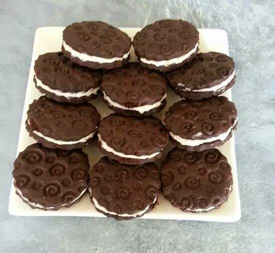 ندخله للفرن بعد اخراجه نلصق الواحدة مع الاخرى بالشكلاط الابيض او بالمورانك