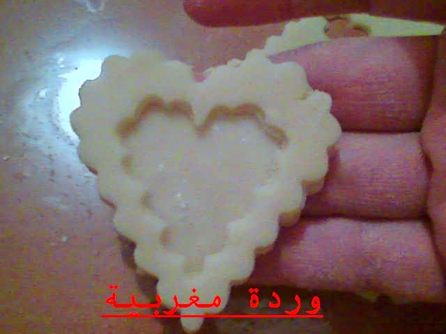 نحطو فوق القلب اللي دهناه بابيض البيض
