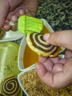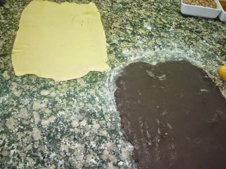 والقسم الاخر يضاف اليه كاكاو مر ويعجن