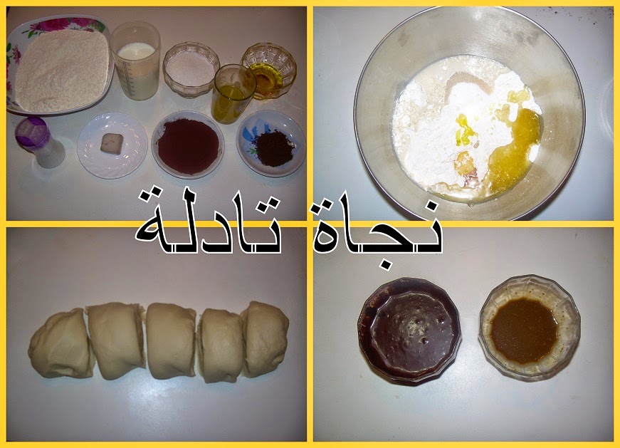 تنعجن كل المقادير بالحليب تدلك مزيان ثم قسمتها الى 5 قطع متساوية