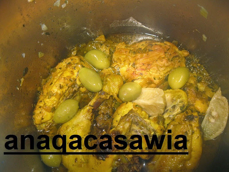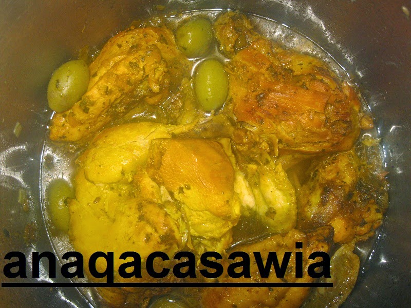 من بعد كنضيف زيتون وحامض نخليه غير شوية ونطفي عليه