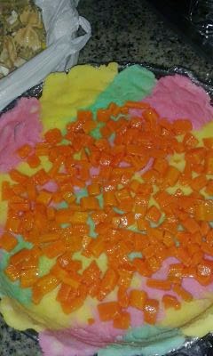 أنقوم كل الخضار كل واحد بوحدو أندرلهم زيت الزيتون والملح و المقرنية انديرليها البيض مقطع وطون والبشنة ونديرهم إبردو أنشد بطاطا نقسمها على 3 مرات كل واحد أندرلو لون ونشد المول ألي كيتفتح ولبسلو سلوفان وندرلو شوي ازيت بش ما تلصق بطاطا فيه والصور توضح الطريقة