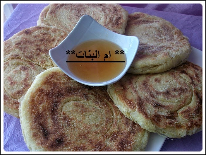 بعد النضج ندهنها بزبدة و هي سخونة من الجهتين و تقدم مع الزبدة و العسل بصحتكوم و راحتكم