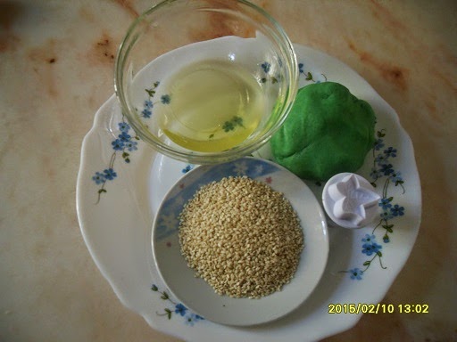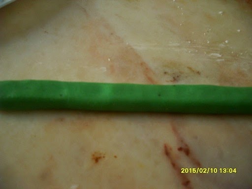 ناخدو عجين اللوز نديروها على شكل حرابل طوال مسطحين بعد مانكونو طبعا نسمناها بروح النعناع او حسب الذوق ديالكم نذهنوها بابيض البيض ونفندوها في زنجلان ابيض ونقطعوها مستطيلات نزينوهم بعريشات من نفس العجين ونذخلوها للفرن غير شوية باش يتعقم البيض دون ان يتغير لونها