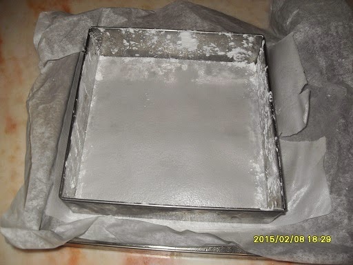 اولا نوجدو الاطار اللي غاديين نصبو فيه النوكا نفرشو ليه ورق azyme الخاص بالنوكا الى ماكانش ندردرو النشا مخلطة مع سكر كلاصي