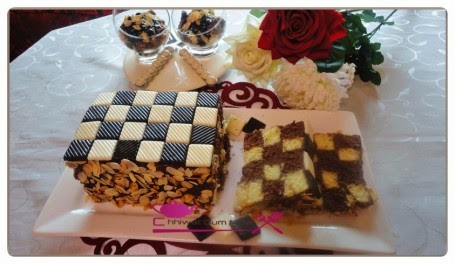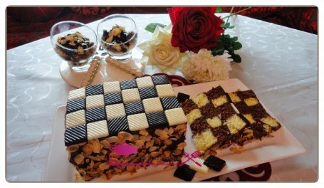 و مربعات من الشوكولا البيضاء والسوداءطريقة تحضير كيكة داما