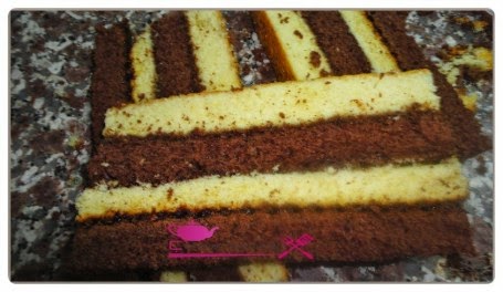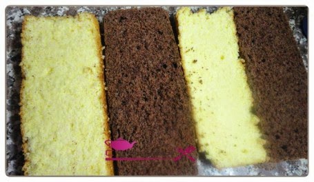 نقسم الكيك الابيض و الكيك الاسود لنصفين