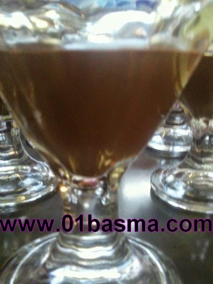 نضع الكل على النار مع التحريك المستمر ختى يعقاد و نصبه في كؤوس
