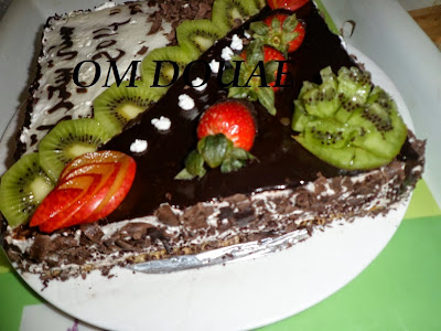 ثم تزين حسن الرغبة انا استعملت فالتزيين برقوق كيوي فريزو في الجوانب شكلاط محكوك مخلط مع فرمسيل وانتم لكم الاختيار