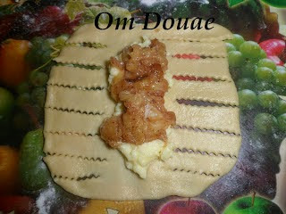 الشكل الاول نبسط الكرة فق سطح مرشوش بالدقيق و الصور توضح بالنسبة للحشوحسب الرغبة استعملت كريم باتيسيير
