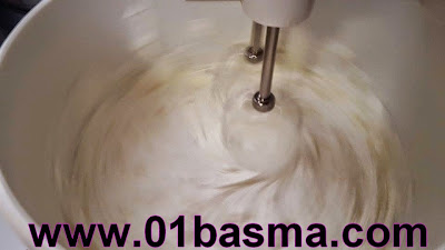 نطرب القشدة مع السكر حتى يتضاعف حجمها