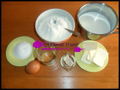 نجمعو الدقيق والبيض وباقي المقادير بالحليب الدافئ الا الزبدة اللينة نتركوها هي الاخيرة