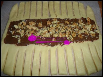 عملت من نصف العجين ايضا ضفيرة ملاتها بالنوتيلا وعين الجمل (الكركاع المهروش)