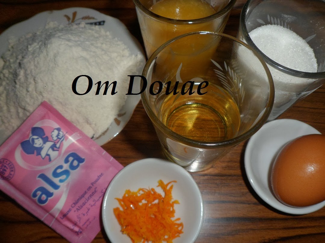 حاجتنا بيضة كاس قريب لعمارة عصير البرتقال نصف كاس سنيدة ربع كاس الزيت قشوربرتقالة محكوكة خمارة الحلوى كاس وربع الدقيق (حسب الخليط)