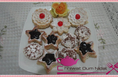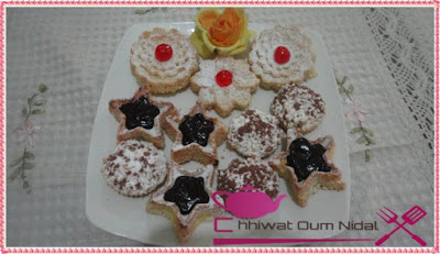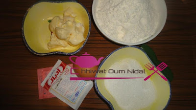 العجين المفتول: 50غ زبدة + 220غ دقيق+ملح+2 معالق سكر+1 خميرة الحلوى+1 ڤاني+1 بيضة