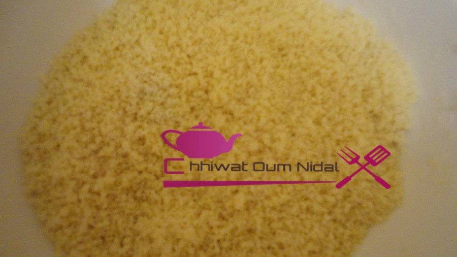 نمرر العجين في غربال ذا ثقوب كبيرة. (يمكن إضافة شوية دقيق لتسهيل مرور العجين)