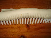 خذي مشط جديد ، ضعي العجينة فوق المشط وإضغطي جيدا حتى تتشكل جيدا الخطوط