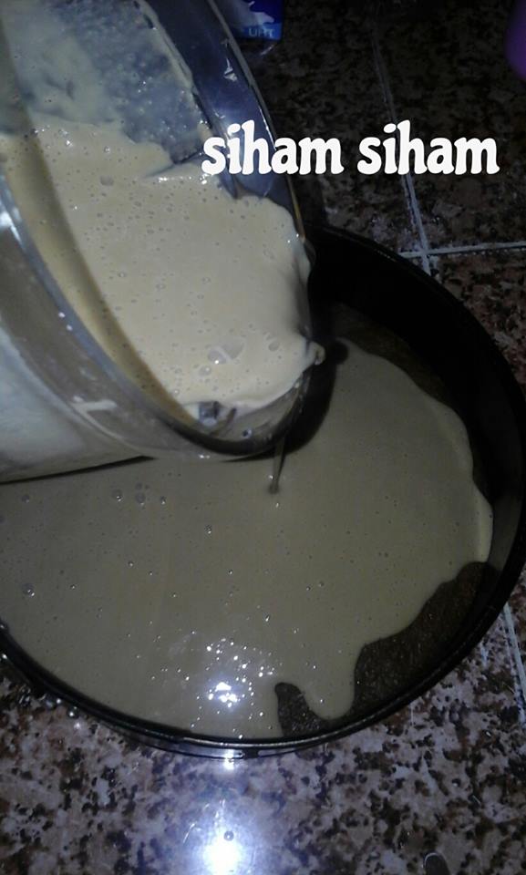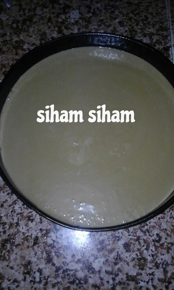 نخلط الكل و نضعه في القالب اللي كيتحل وندخلوها للفرن حتى طيب ونخرجوها ونسقيوها بنصف كاس ماء سخون مذوبين فيه معلقة ك نسكافي