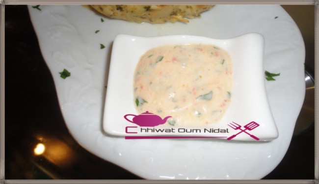 نأخذ ياغورت طبيعي نضيف له ملعقة كبيرة من الموطارد و القليل من عصير الحاملض و المعدنوس مقطع بالاضافة الى الملح الابزار و الهريسة لمن يحب الحار
