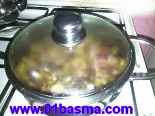 قزبر و معدنوس مفرومين ثم نضيف الكبدة و الطيحان و القلب و نترك الكل ليتقلى جيدا و يطهى