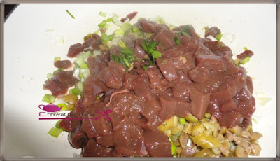 نقطع الكبدة و البصل الاخضر قطع صغيرة