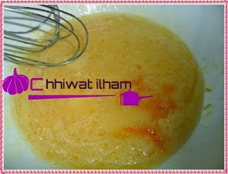 كنخلطو البيض والسكر جيدا تم نضيف الزيت العصير والجزر