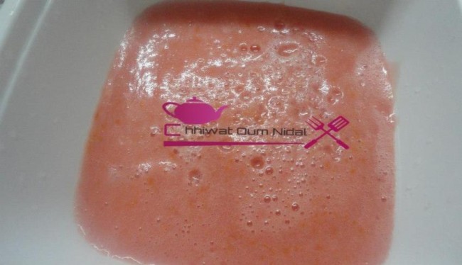 نقطع الطماطم الى اجزاء مع الاحتفاظ بقشرتها و التخلص من بذورها ثم تطحن جيدا
