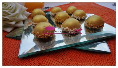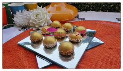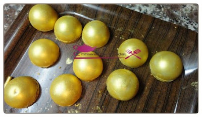 ندهن الشكلاط بالبودر الذهبية و على الجوانب ندهن الناباج و نمررهم في العقيق