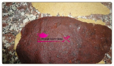 نضع عجين التمر فوق عجين الصابلي ثم من فوق نغطي بعجين الصابلي كما هو موظح في الصور