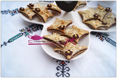 نقطع الصابلي بالقطاعة و ندهن وجهه بابيض البيض و نرش رقائق اللوز و ندخله للفرن