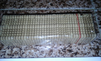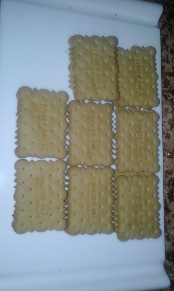في طبق التقديم نصفف البسكوي بعد غطسه في القهوة