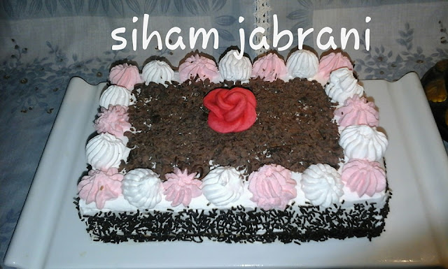 ممكن تزيين الجوانب بالفرمسيل بعد تغطيتهم بالكريمة و جوانب حلوة لاكريم بوريدات كريمة الشونتيي و الوسط الشكلاط محكوك
